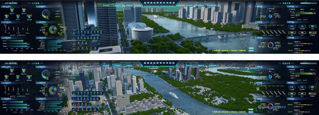 基于CIM基础平台,充分融合BIM、IoT、实景三维等数据,打造滨海新区“1+4+N”新型智慧城市建设体系,以运营管理中心为载体,将分散在城市各个角落的数据汇集起来,打通信息孤岛和部门壁垒,实现数据互通共享,整合接入了全区28个已建系统,新开发建设了10个系统应用并投入使用。